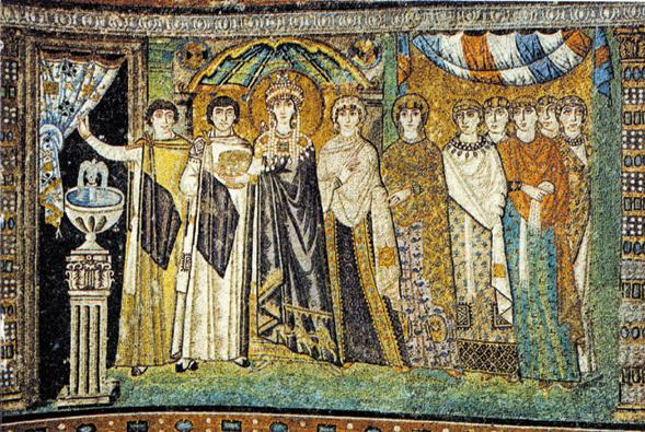 A imperatriz Teodora, que exerceu grande influência no governo de seu esposo Justiniano.